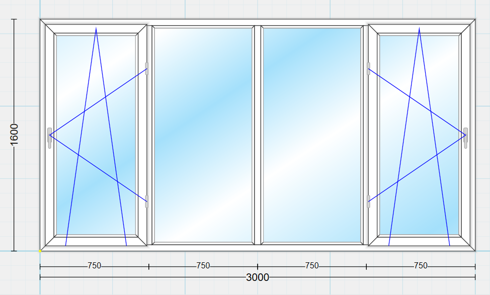 پنجره دوجداره ۴ لنگه لولایی